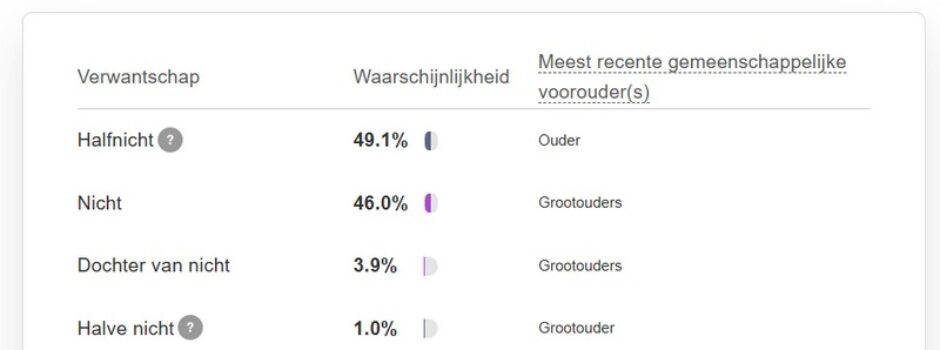 Waarschijnlijke Verwantschappen MyHeritage